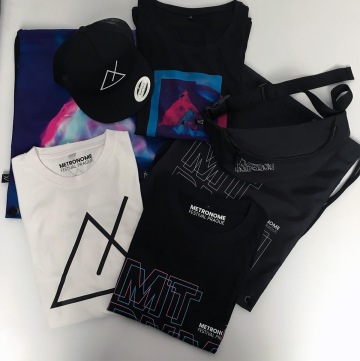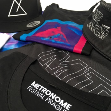 We have provided a diverse collection of merch for the Prague music festival Metronome Festival Prague 2019, including the preparation of graphic designs in cooperation with designers from Studio Divize. Following an agreement with the organizers, to the t-shirts in three designs with a metronome motif decorated with woven labels we added two versions of gym bags, printed truckers and also waist bags. There were also organizers' t-shirts in purple color.