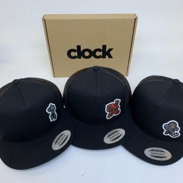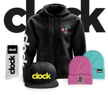 Klient: Pivovar Clock Zadání: Vytvoření merch kolekce ve specifickém designovém duchu tohoto progresivního pivovaru. Design: Kombinace loga a ztvárnění originálních figurek robotů Clock, Hektor a Twist. Řešení: Figurky robotů jsme zpracovali formou nášivek se sublimačním potiskem a našili na mikiny (z 85% organické bavlny a 15% recyklovaného polyesteru) a na kšiltovky "truckerky". Samotné logo Clock jsme pak použili sítotiskem na rukávy mikin, na hruď triček (ze 100% organické bavlny) a 3D výšivkou na snapbacky. Tkaným labelem jsme ozdobili jak lemy trik a mikin, tak barevné kulichy "ohrnováky". Trika jsme pak namísto PVC sáčků zabalili do craftových krabiček s potištěným logem a samozřejmě nemohly chybět ani ponožky včetně přebaluz tvrdého papíru v designu.