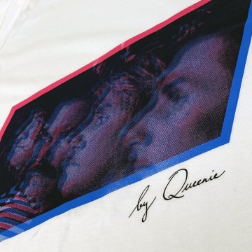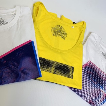 Mohli jsme udělat další nudný merch s logem kapely na prsou na nejlevnější textil na trhu Ale my jsme řekli NE! Strašně moc děkujeme za to, že kapela Queenie jde v rámci tvorby svého merche jinou cestou než většina hudebních interpretů, tedy cestou kreativity a kvality, v čemž jsme poslední měsíce najeli na stejnou vlnu a společnými silami připravili kolekci, na kterou jsme opravdu pyšní Výsledek hodně baví evidentně nejen nás, což je vidět z dosavadní odezvy od fanoušků na koncertech, a to je pro nás ta nejlepší odměna Všechna trička jsou samozřejmě vyrobená ze 100% organické bavlny ve fair wear dílnách (plátěné tašky z 80% recyklované bavlny a 20% recyklovaného polyesteru), díky rastrové grafice jsou potištěná sítotiskem a vícebarevné motivy navíc fungují jako optický klam, například při pohledu skrz foťák mobilního telefonu Trička, tílka i plátěné tašky jsme dozdobili labely s písmenem Q vytkaným zlatou blyštivou nití. Nic není zabaleno do plastových pytlíků, při prodeji se používají papírové krabičky s potiskem erbu Queenie.